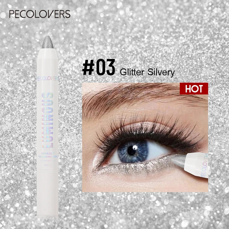 1 Pcs Brightening Highlighter, Sparkling Eye Corner, Eye Shadow Stick, Face Highlight and Eye Shadow, Pearl White Gliter Pen