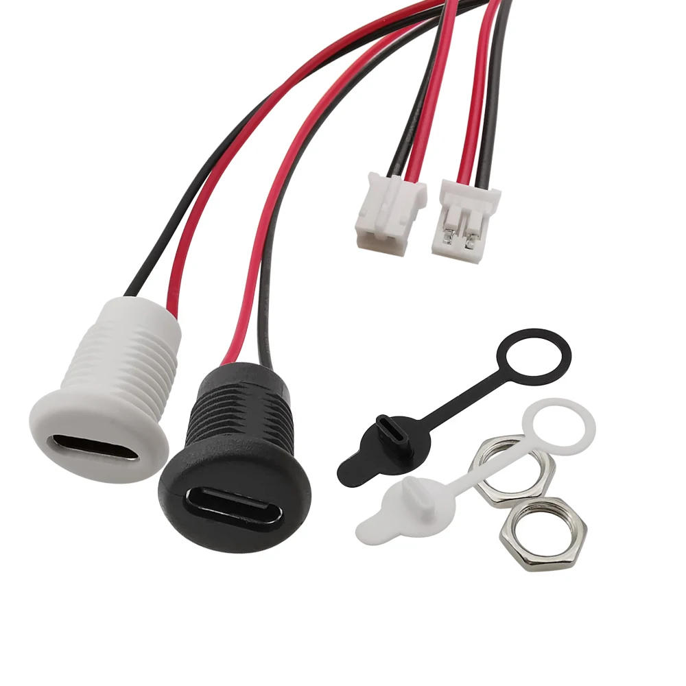 1 pcs Waterproof USB Connector Type-C Waterproof to Jst PH 2.0 nut locking plate Female High Current Fast Charging jack port
