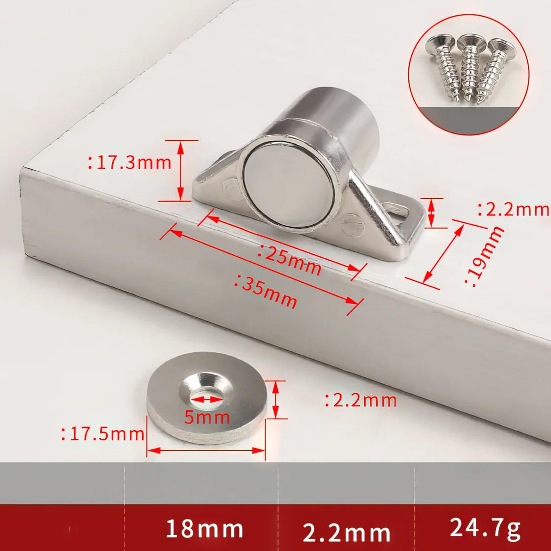 Product DescriptionFeatures:100% Brand New.The solid magnetic drive guarantees that your cupboard doors and drawers aren't any longer loose.Built-in powerful magnet, use the magnetic power of the cabinet to soak up the iron sheet to attain the impact of tightly closing the cabinet doorThe strength is The Poewr just right, it won't make you're feeling tough to open shelves or drawers.Solid thickened material, the entire physique is thickened for decades and has strong rust resistance and corrosion resistance.The set up is simple, simply mark the location and wear the screws.Material: Zinc Alloy Color: Gold, Antique Bronze, Red Bronze, Silver, Gun BlackSize: approx. 35*19mmPackage list:1pc x Magnet Cabinet Door CatchNote: 1.Please enable 1-2cm error because of handbook measurement.2.The color could have various as the distinction display, pls understand.