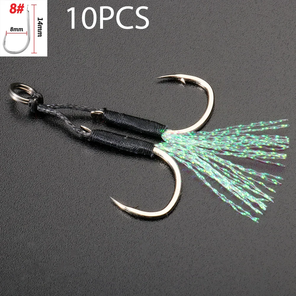 10 Pairs Cast Jig Assist Hook High Carbon Steel Angle Barbed Thread Feather Fishing Tackle Slow Jigging Tool Pesca Lure Fishhook