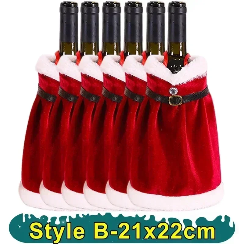 1/10PCS Christmas Red Dress Wine Bottle Covers Velvet Wine Bottle Bags Xmas New Year Holiday Party Dinner Table Decoration Gifts