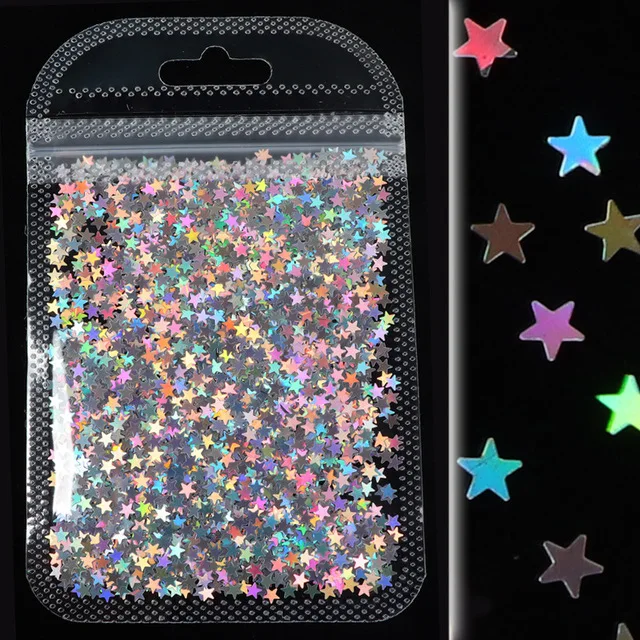 12 Colors Star Shape Laser Glitter DIY Lip Gloss Decor Shiny Flakes Lipgloss Base Mixing Decorations 3g Features: 12 colors for your choices. non-toxic and eco-friendly. Suit for lip gloss diy, nail dcor, slimes mix, etc.
