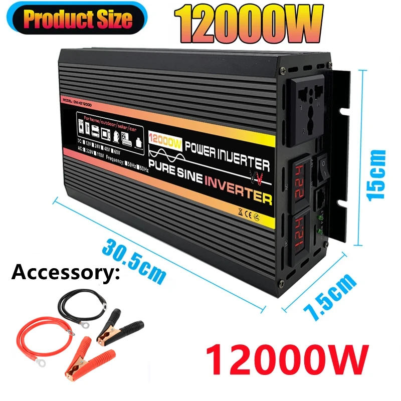 12000W Pure Sine Wave Power Inverter Voltage Transformer Intelligent Digital Display Car Home Outdoor DC12V to AC 220V/