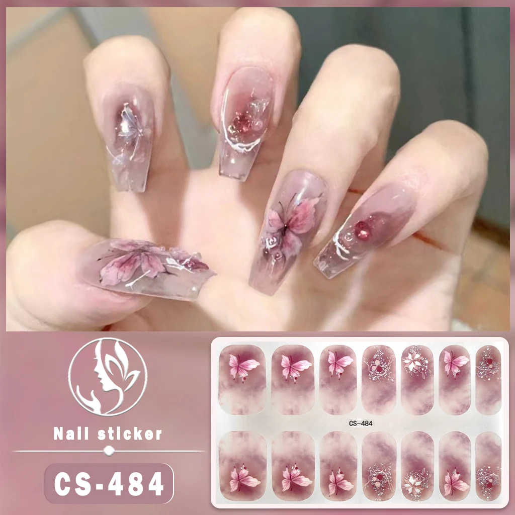 14 Tips Full Cover Gel Nail Strips Sticker Long-Lasting Nail Polish Strips Wraps Nail Art Stickers Self-Adhesive DIY Slider