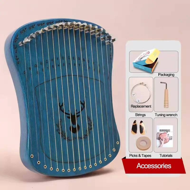 Features: Carefully polished mahogany wooden material, the surface is gentle and round, which has nice hand feels Portable Lyre harp has mini compact size, which is awfully handy to take it out anywhere It can produce a soothing and calming sound, you may enjoy to play with this little device Easy to learn, smooth to play the nice and cozy and ethereal tone Arc guard design, fit the palm radian, pleased grip, and straightforward to play The look is novel and unlocks a new way of playing string instruments Suitable for travel entertainment, religious ceremonies, relax, decompression, weddings and other social gatherings Specifications: Color: Blue / Coffee / (Optional) Material:mahogany wooden Strings:17 Type:box Package List: 1 * 17 String Lyre Harp 1 * Tuning Wrench 2 * Picks 1 * Tape 1 * Set of replacement strings 1* Tutorials
