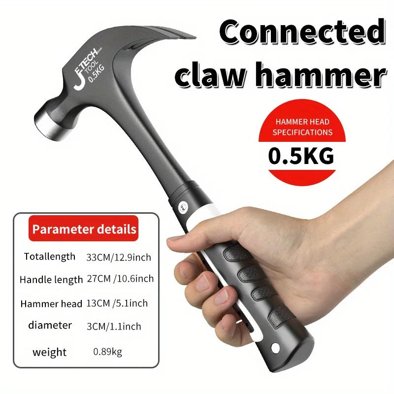 1pc Integrated Claw Hammer, Professional Woodworking Joinery Home Carpentry Hand Hammer, Nail Hammer, Non-Slip Multifunctional H