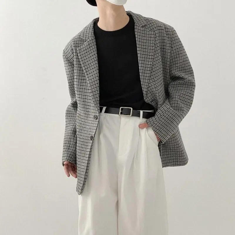 2024 Autumn Winter New Men's Notched Button Plaid Business Casual Comfortable All-match Long Sleeve Loose Jackets Blazer