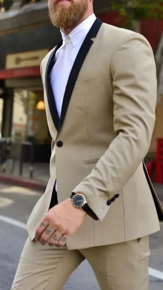 2024 Champagne Elegant Suits For Men High Street Slim Fit Blazers Hombre Casual High Quality Custom 2 Piece Set Costume Homme
