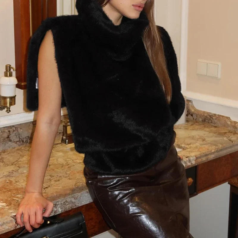 2024 Winter New Solid Faux Fur Vest for Women Sleeveless High Collar Thickened Warm Jackets Female Street All-match Outwear