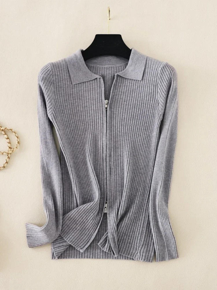 2025 Autumn and Winter New Knitted Bottoming Shirt Solid Slim Long Sleeve Tops Polo Collar Short Sweater Cardigan Women Clothing