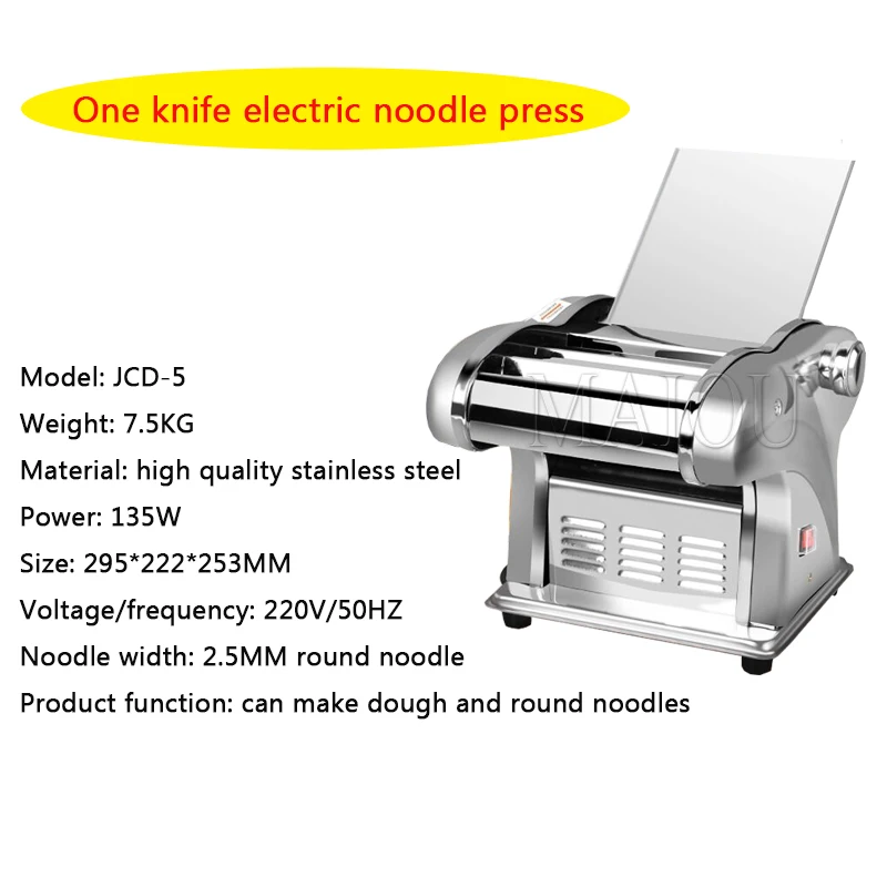 Product parameters: One knife electrical noodle press Model: JCD-5 Weight: 7 Material: fine stainless-steel Power: 135W Size: 295*222*253MM Voltage/frequency: 220V/50HZ Noodle width: 2 round noodle Product function: can make dough and around noodles Two-knife Electric Noodle Press Model: JCD-6 Weight: 8KG Material: high quality stainless-steel Power: 135W Size: 288*242*245MM Voltage/frequency: 220V/50HZ Noodle width: 1 skinny round noodles 4MM flat noodles Product function: could make dough, flat noodles, thin round noodles Three-knife Electric Noodle Press Model: JCD-8 Weight: 8 Material: positive stainless-steel Power: 135W Size: 286*286*253MM Voltage/frequency: 220V/50HZ Noodle width: 2 skinny round noodle 4MM flat noodles 9MM huge flat noodles Product function: can make dough, round flat noodles, vast flat noodles Four-knife Electric Noodle Press Model: JCD-10 Weight: 9KG Material: superb stainless steel Power: 135W Size: 328*286*253MM Voltage/frequency: 220V/50HZ Noodle width: 1 thin around noodles 2 round floor 4MM flat noodles 9MM wide flat noodles Product function: can make dough, around noodles, around noodles, flat noodles, large flat noodles Delivery way: 1 you choose "seller&;s shipping Method" we are able to enable you to arrange the cargo by sea and convey on your nearest seaport! - If CFR by way of sea, that means, after arriving destination seaport, the client should pay the vacation spot port costs (such as terminal dealing with charges, documents charges, storage charges, ect), tax to do the customs clearance and pick up the products by yourself 2 you choose "By Express " we are able to assist you to to arrange the cargo via overseas explicit (such as DHL / TNT/ FEDEX /ARAMEX, ECT) and instantly carry for your address (DOOR TO DOOR SERVICE)! If shipment by way of express, after arriving , the customer only need to pay tax and assist delivery corporation to do the customs clearance is okay three you choose " By Air " we are able to show you how to to rearrange the cargo by aircraft and convey to your nearest airport! after arriving the airport , the customer deserve to pay tax to do the customs clearance and pick up the goods by means of yourself(wei) please be aware : 1 If the product is updated, we will ship the newest genre The look may well change, but the parameters and functions remain unchanged 2 If the manufacturing means of mechanical merchandise calls for welding There will be slight welding lines at the welding point This is normal, no longer a flaw If you mind, please place your order closely or contact the vendor to check the detailed photo three All machine length and weight measured via our hands,maybe have some deviation,please don&;t minds