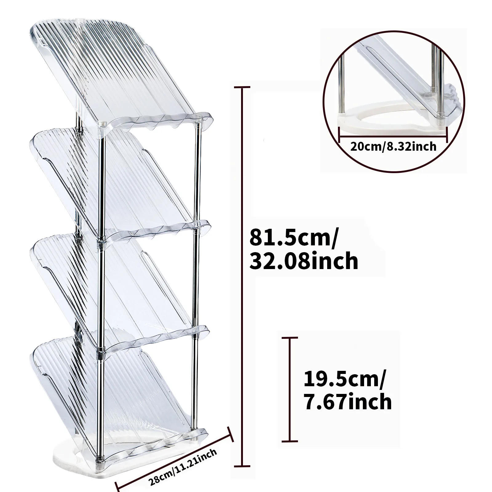 Feature: [High Quality Material] This shoe holder is product of effective PET plastic and stainless steel, sturdy and with excessive weight skill Compared with other wooden and material shoe racks, it is non deformable, stain resistant, cleanable and odorless [Layered Stacking Storage] This shoe shelf is designed with splicing, that are freely combined and flexibly stored, and can also be freely assembled as needed, making it the best choice for domestic garage [Easy to Install] Our shoe organizer has a very simple constitution and can be put in in minutes with none instruments It is really easy to disassemble, reusable and straightforward to store [Wide Application] This shoe rack has a tilted design, which not only occupies a small area, but also can effectively utilize the distance subject to storing extra shoes, books, snacks or tissues and other items It is suitable for placing in entrances, entryways, closets, dwelling rooms, bathrooms, bedrooms and balconies Specification: Product Name: Shoe Rack Color: Clear White Material: PET + Stainless Steel Size: 28 x 21 x 81 / 11 x 8 x 32 inches (After installation) Package Included : 1 × Base 4 × Shoe Racks nine × Stands