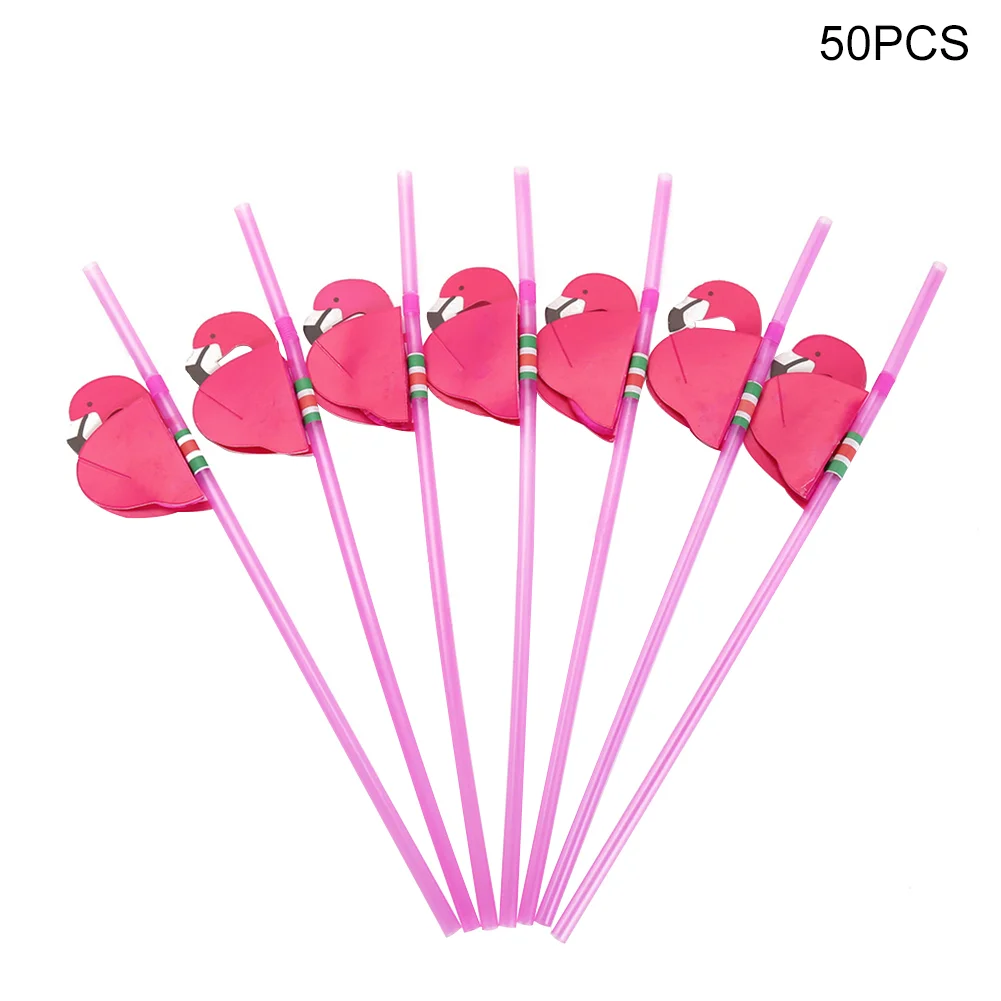 50Pcs Flamingo Plastic Drinking Straws Tropical Pineapple Juice Cocktail Disposable Juice Straws Hawaii Party Wedding Decoration