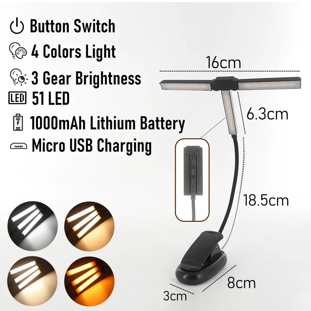51 LED New Tri-Head Clip Book Light 4 Colors 1000mAh USB Rechargeable Bedroom Eye Protect Reading Night Lights Table Books Lamp