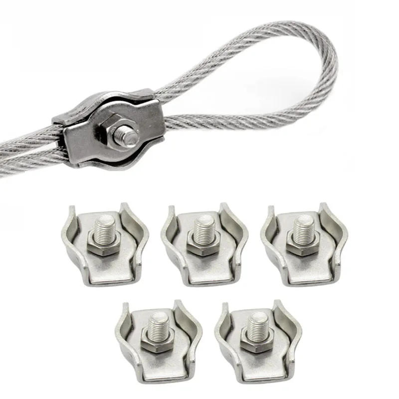 5pcs 304 Stainless Steel Wire Rope Clamps Single Clip Fixing Cable Connector Lock wire For 2/3/4/5/6/8mm Wire line Fastener