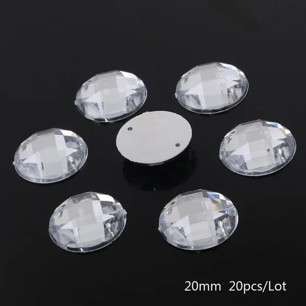 8-20MM Shine Acrylic Round Rhinestone Flat-back White Clear Double Hole Garment Beads for Handmade Clothing Sewing Accessories