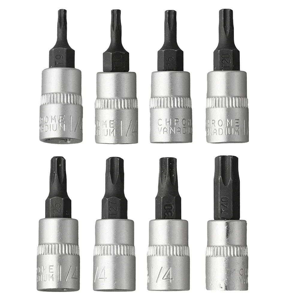 8pcs Torx Bit Sockets Set 1/4 Inch Driver Socket Ratchet Socket Wrench Screwdrivers Hand Tools T8 T15 T20 T25 T27 T30 T40