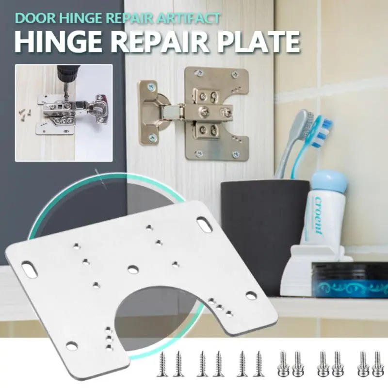 9x7cm Cabinet Hinge Repair Plate Kit Kitchen Cupboard Door Hinge Mounting Plate With Holes Flat Fixing Brace Brackets Tools