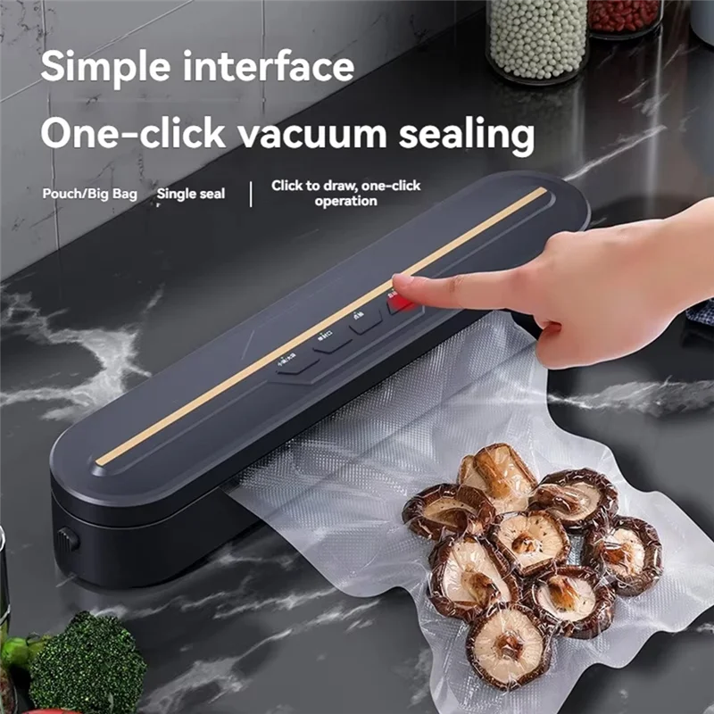 Easy operation: One-button vacuum Extend preservation HD Digital Display; Operation at a glance High strength vacuum Strong freshness Low consumption and big suction vacuum Support multi-package paintings and improve paintings performance Input power:120W Width of sealable bag:less than equivalent 30cm Vacuum sealing:22s Product size: 350x72x60 mm Single seal:7s Rated voltage:100-220V Plug Type:US Plug, it applies to Canada, India, Mexico, Thailand, Taiwan, the United States, the Philippines and so on Voltage:AC110V Color:As Shown Material:ABS Package Contents: 1 x vacuum sealer Only the above package content, other merchandise aren't included Note: Light reflection and assorted exhibits can cause the colour of the article within the photograph a little bit assorted from the genuine factor The dimension allowed error is +/- 1-3cm
