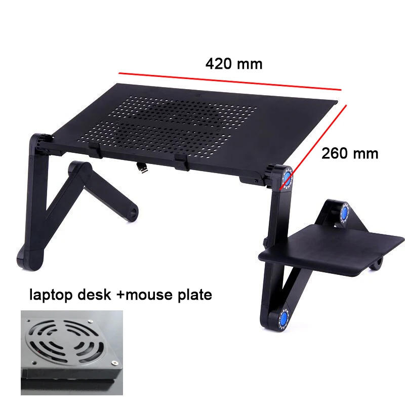 Adjustable Laptop Desk Stand Cooler fan Portable Ergonomic Lapdesk For Bed Sofa PC Notebook Table Desk With Mouse Pad Aluminum