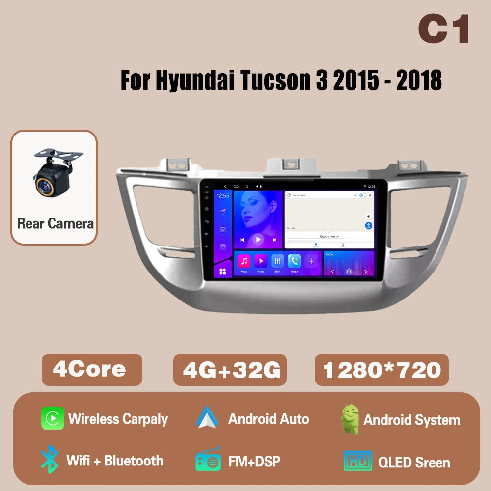 Android 14 Carplay Car Radio Multimedia Player For Hyundai Tucson 3 2015 - 2018 Autoradio Navigation GPS Stereo Head Unit WIFI