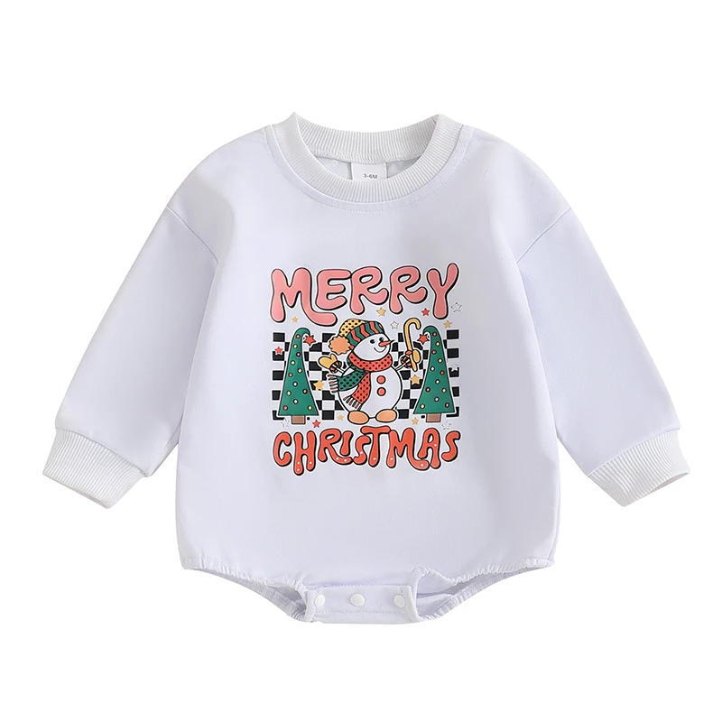 Baby Christmas Sweatshirt Romper Letter Snowman Print Round Neck Long Sleeve Jumpsuit