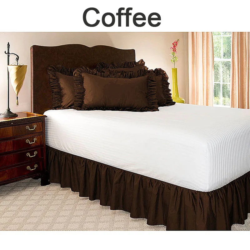 Note: not include pillowcover and bed fitted cover!!! Product Parameters: 1 Material: brushed fabric 2 Scope: beds, bedrooms 3 Style: pastoral four Size ( approx ): Twin (120*200+38cm)/47"" x 78"" + 15"" Queen (150*200+38cm)/59"" x 78"" + 15"" King (180*200+38cm) / 70"" x 78"" + 15"" California King (200*200+38cm) / 78"" x 78"" + 15" five Packing List: 1*bed skirt Product Description: 1 Unique pure colour bed skirt, put on the mattress, not just covers the naked bedsteads but additionally protects the mattress, which is nice, respectable and life like It makes your bed more interesting and beautiful 2 Made of fine fabrics, it will not fade nor capsule With the Elastic mattress skirt, it can easily adapt to a wide range of beds, convenient to clean Note: no longer encompass pillowcover and mattress fitted conceal Due to light differences, there may be slight coloration differences