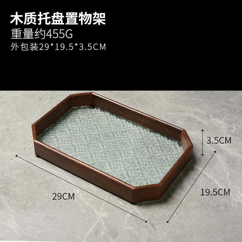 Begonia engraved glass tray unfashionable rectangular tea tray organizer decoration tea cup household fruit snack plate Product Name: Vintage crabapple flower glass bracket Material: Natural log (beech) Product style: Octagon, quadrilateral Product size: As shown in the picture under