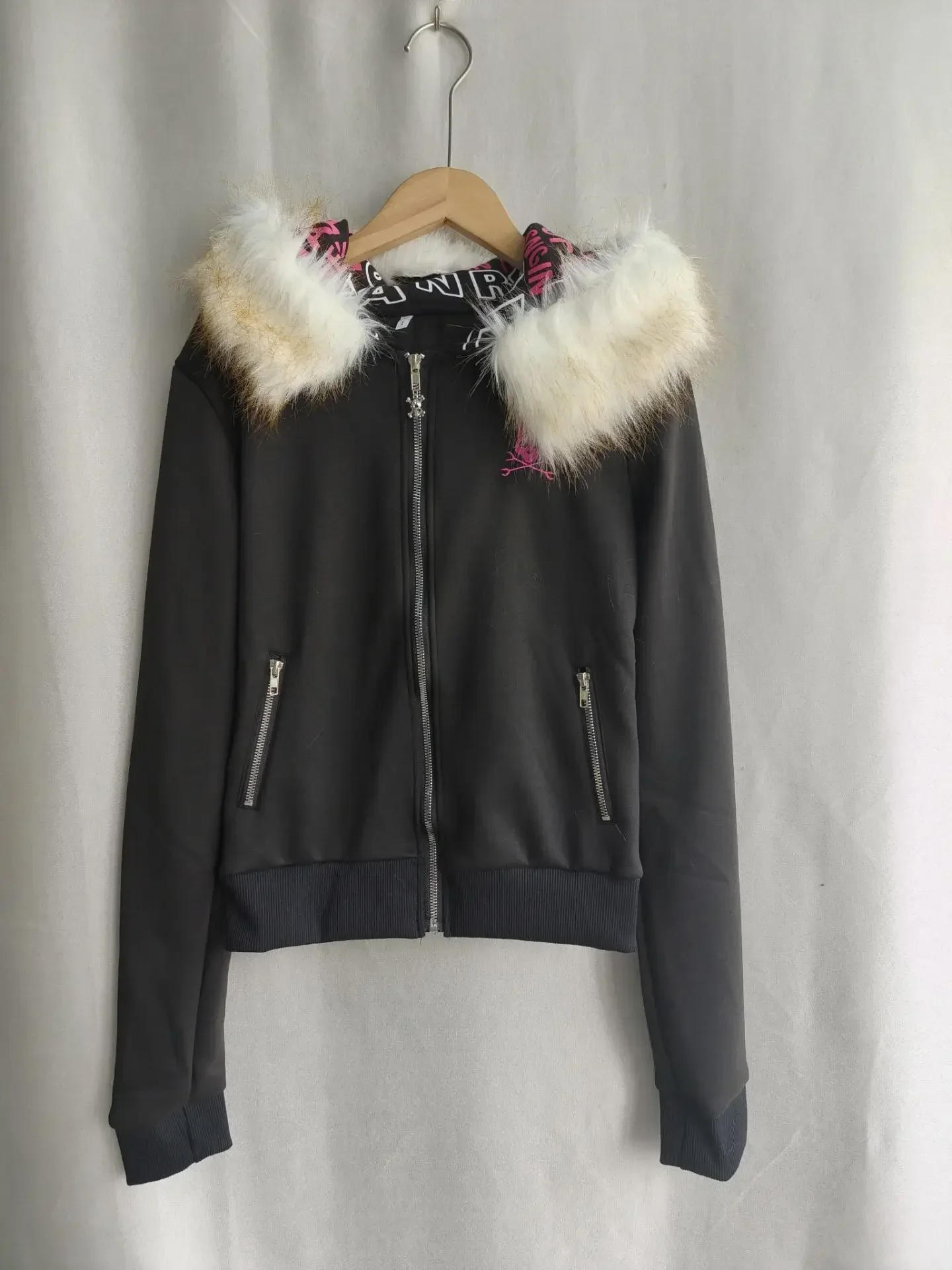 Black Goth Hoodie Women's Clothes Letter Skull Embroidery Zipper Y2k Coat Fashion Hooded Jacket Japanese Sweatshirts Y2K Tops