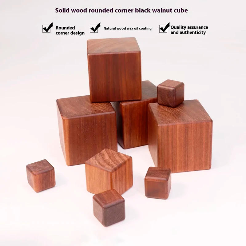 Black Walnut Cube Rounded Solid Wood Square Handmade DIY Wood Surface Polished Solid Wood Base Product introduction: Name: Black walnut cube Material: Black walnut strong wooden Surface status: Polish and apply wood wax oil Size: 2x2x2cm, 2, 3x3x3cm, 4x4x4cm, 5x5x5cm About customization: We can customize wood squares of alternative sizes for you If you need it, please touch us to serve you