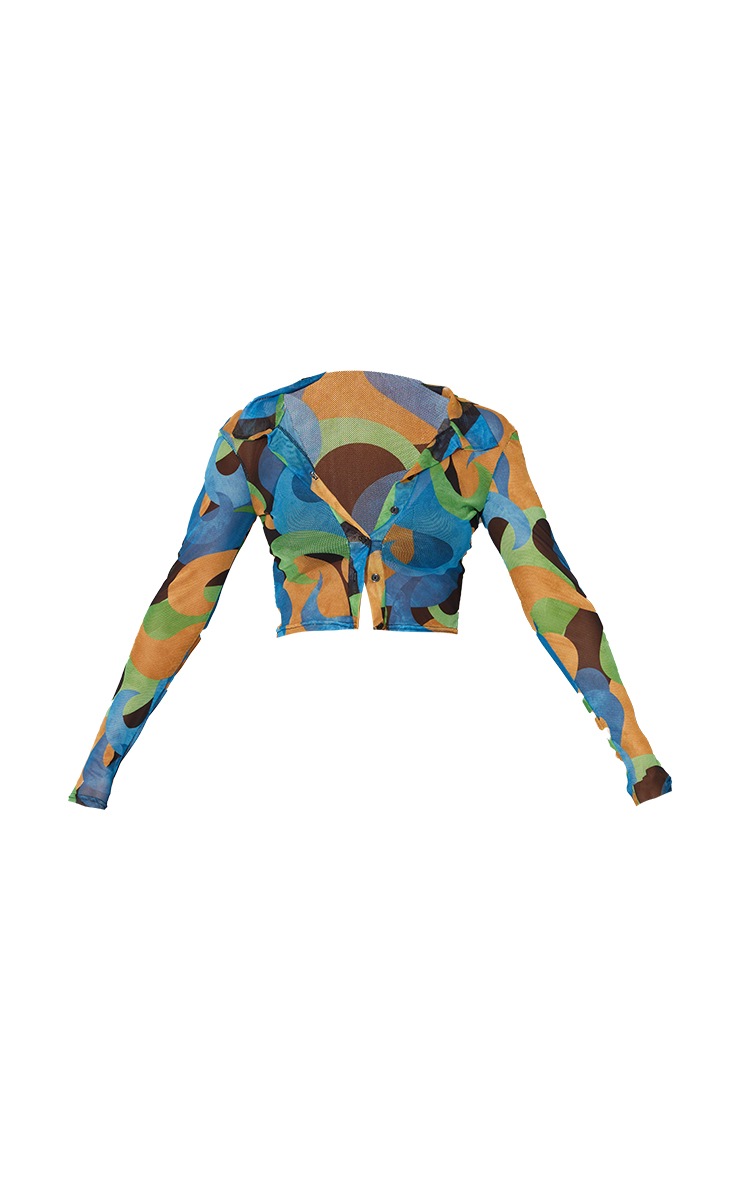Add a cool vibe to any outfit of the day with this shirt. Featuring a blue swirl print on mesh fabric with a cropped fit, we love this teamed with jeans and heels for a look we're obsessing over. Length approx 41cm/16" (Based on a sample size UK 8) Model wears size UK 8/ EU 36/ AUS 8/ US 4 Model Height - 5ft 7" Model Height - 5ft 7"