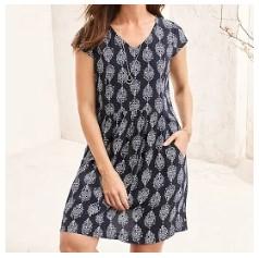 Our dropwaist dress, with serious boho style, is rendered in unique prints that elevate this everyday staple. The details are retro chic with flattering cap sleeves and draped pockets. Relaxed, straight silhouette V-neckline Above-knee length Viscose crepe Substantial poly crepe lining Imported