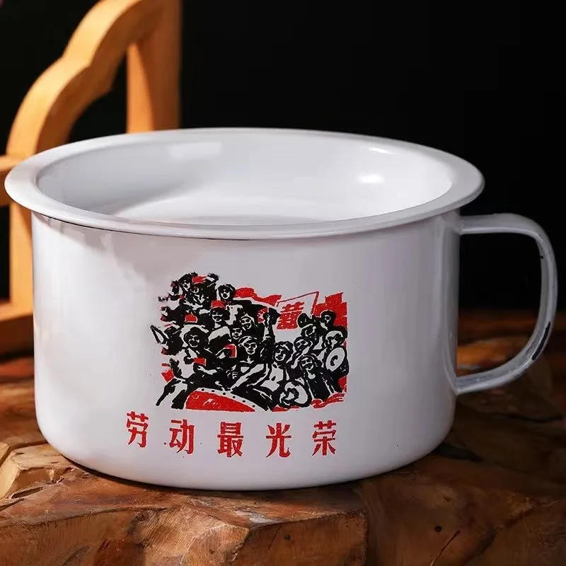 Chinese Enamel Instant Noodle Bowl with Lid, Large Size, Nostalgic Single Lunch Box, Household Rice Bowl, 1300ml