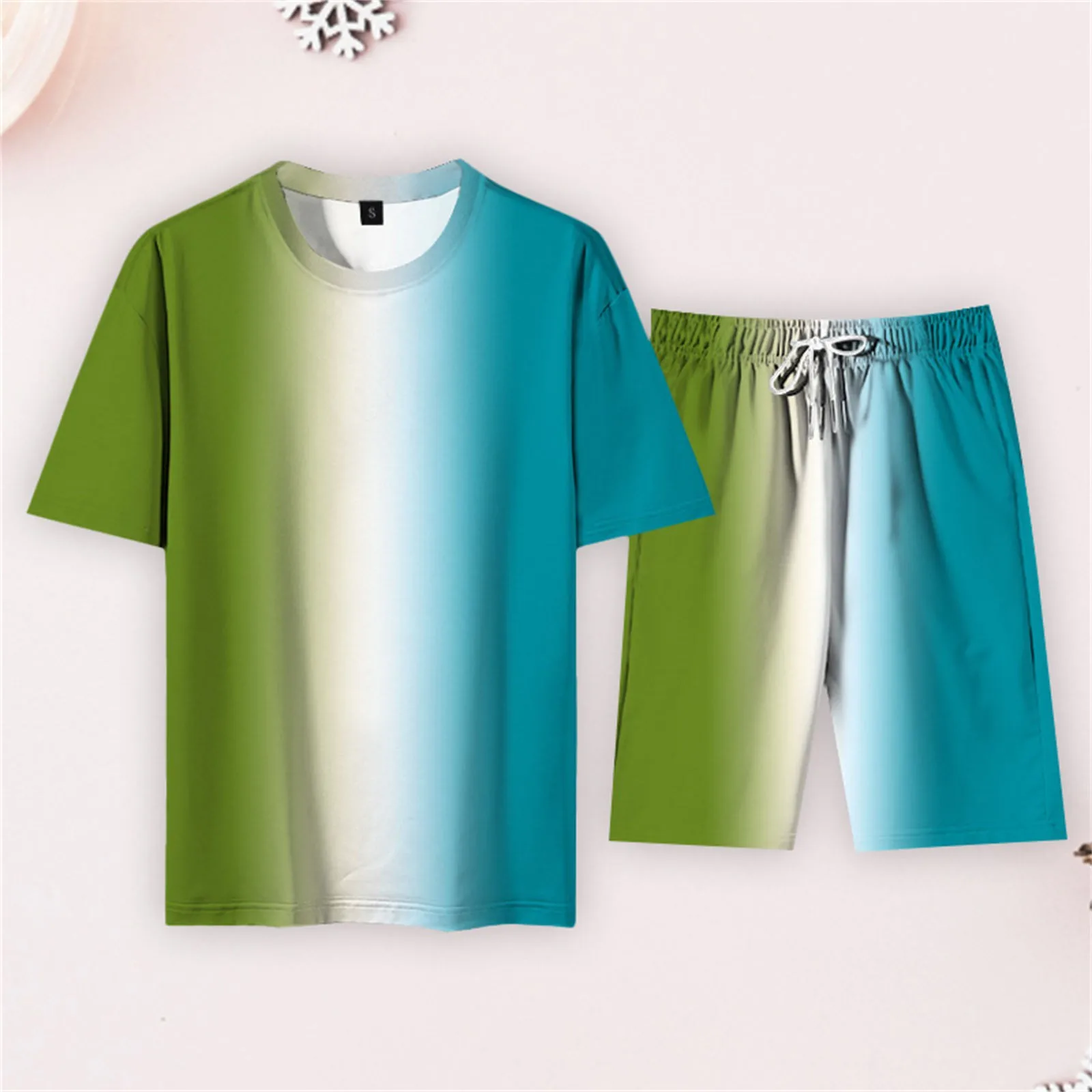 Chándal informal con estampado degradado de Color sólido para hombre, pantalones cortos de manga corta, conjunto de chaleco, traje completo, trajes de graduación y