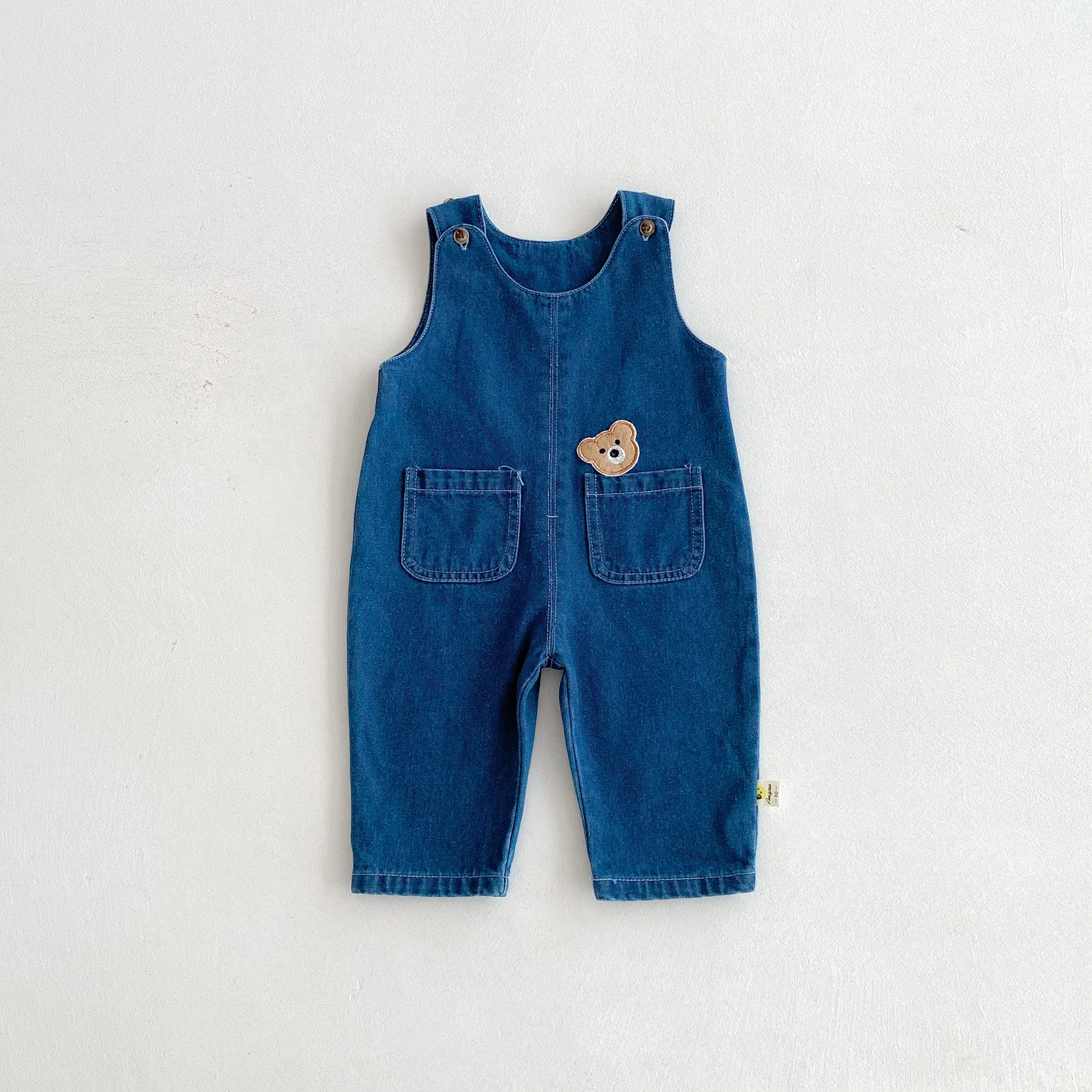 Cool and cute denim overalls for boys and girls in autumn and winter, with big pocket bear overalls