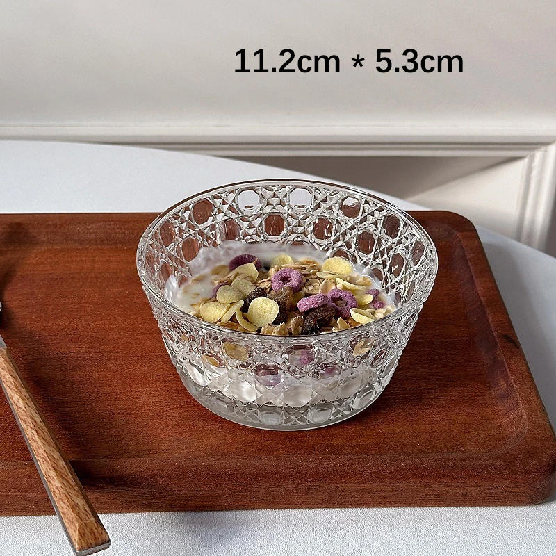 Creative Relief Glass Bowl Korean Ins Transparent Round Kitchen Homehold Tableware Vegetables Fruit Yogurt Salad Dessert Bowls