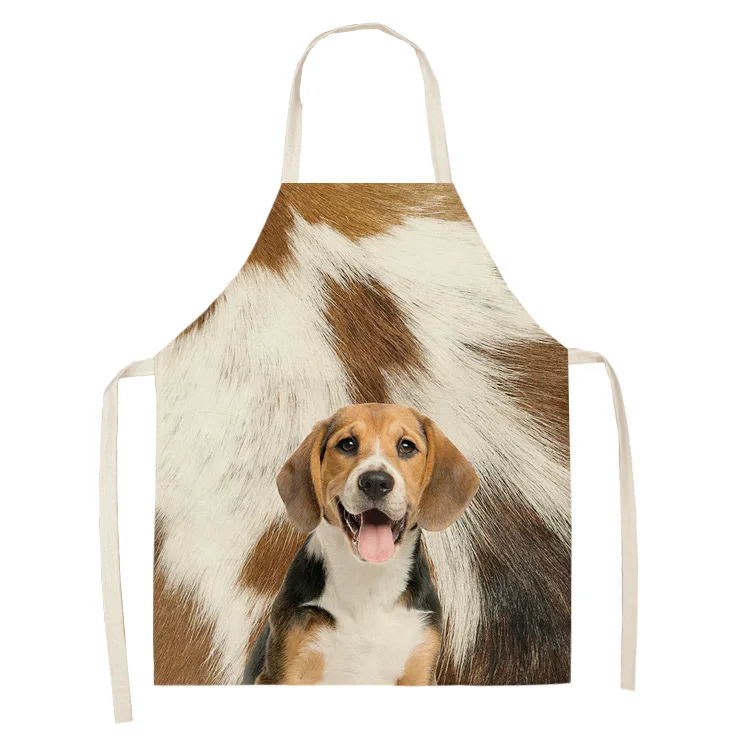 Cute Dogs Aprons Cartoon Dogs Printed Kitchen Aprons for Women Household Cleaning Accessories Cotton Linen Cooking Apron