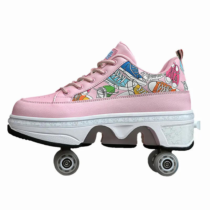 Deformation Roller Skates Shoes Double Row 4-Wheel Skates Roller Shoes with Wheels Dual-Purpose Roller Sneakers Skateboard Shoes