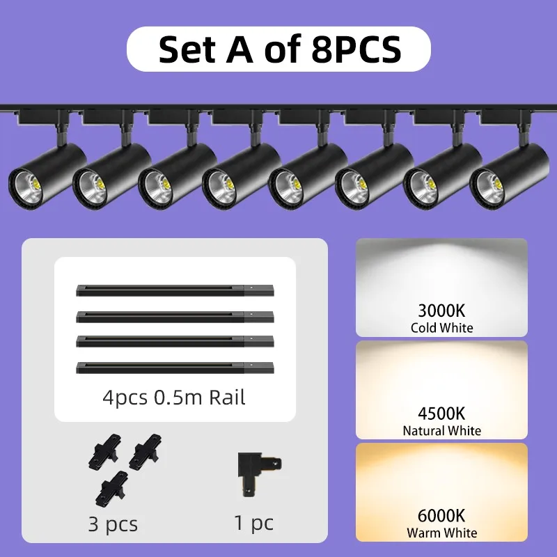 Dimmable Cob Track Lighting 220V Spot Led Rail Lighting Set 12/20/30/40W Track Light System Store Room Kitchen Lighting Fixtures