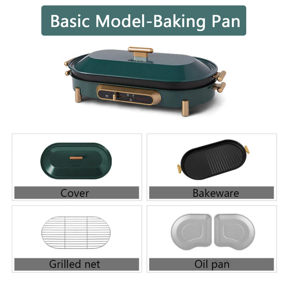 Specification Weight: three Rated voltage: 220V Rated power: 1600W Suitable: 5-10 people Material: Non-stick coating Product size: 49*14*24