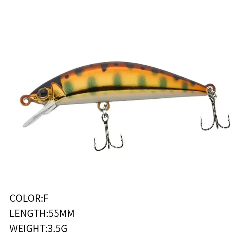 EASYFISH 1 PCS 3-d Fish Eye Submersible Minnow Bass Croaker 55mm/3 Freshwater Creek Mini Road Runner High Quality Hand Painted Product Introduction: Fishing Lure 1 General Information • Model: 9197 • Type: Sinking • Length: 55mm • Weight: three • Colors: Available in nine diversified colours 2 Design Features • 3-d Holographic Fisheyes • These eyes are bright and extremely transmissive, which strongly entice fish They mimic the arrival of real fish eyes, making the lure more nice looking to predators • Flutter Hem • The lure incorporates a constructed - in 3-D reflective laser flash and simulated fish scales The flutter hem creates a tantalizing movement in the water, making it hard for fish to withstand • Detailed Carvings • The lure has a fragile baitfish look with super consideration to detail This practical design is a gigantic draw for predatory fish three Hook and Ring Features • 3D - Anture Eyes • The 3D - anture eyes add to the sensible appearance of the entice • Qualitied Treble Hooks • The trap is supplied with excessive - quality treble hooks, ensuring a secure catch when a fish bites • Double Circle Flat Ring • The double circle flat ring enhances the sturdiness and balance of the lure, permitting it to withstand the rigors of fishing 4 Color Options • Color A: A bright and colorful sample that stands proud within the water • Color B: Features a different blend of colours to attract different fish species • Color C: A bright and eye - catching colour scheme • Color D: Utilizes a mixture of hues to imitate the advent of pure prey • Color E: A hanging coloration option designed to attract in fish • Color F: Offers a different and alluring colour sample • Color G: A visually appealing color choice for different fishing environments • Color H: Features a unique color mixture to appeal to fish • Color I: A really expert shade choice for specific fishing conditions five Advantages in Fishing • Realistic Appearance: The lure&;s detailed design and 3-d points make it extremely realistic, rising its effectiveness in attracting fish • Durability: With features just like the double circle flat ring and qualitied treble hooks, the entice is constructed to final • Versatility: Available in nine different colors, it may be utilized in different fishing environments and for various fish species This fishing lure is a properly - designed and flexible device for anglers, offering either functionality and visual appeal to increase the fishing ride
