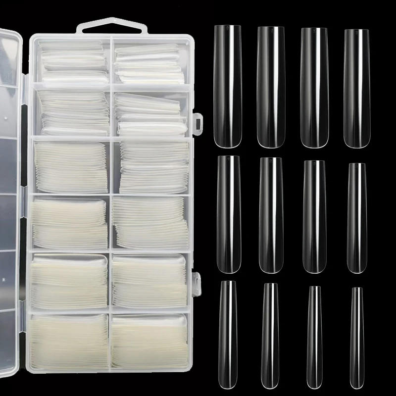 Extra Long Square Full Cover Nail Tips 240Pcs Clear Full Cover Fake Nails False Nails 12 Sizes Square Press on Fake Nail Tips