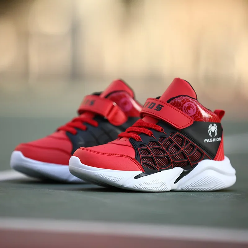 Fashion Kids High-top Cartoon Spider Sneakers Boys Casual Breathable Tennis Shoes Comfortable Non-slip Basketball Sports Shoes