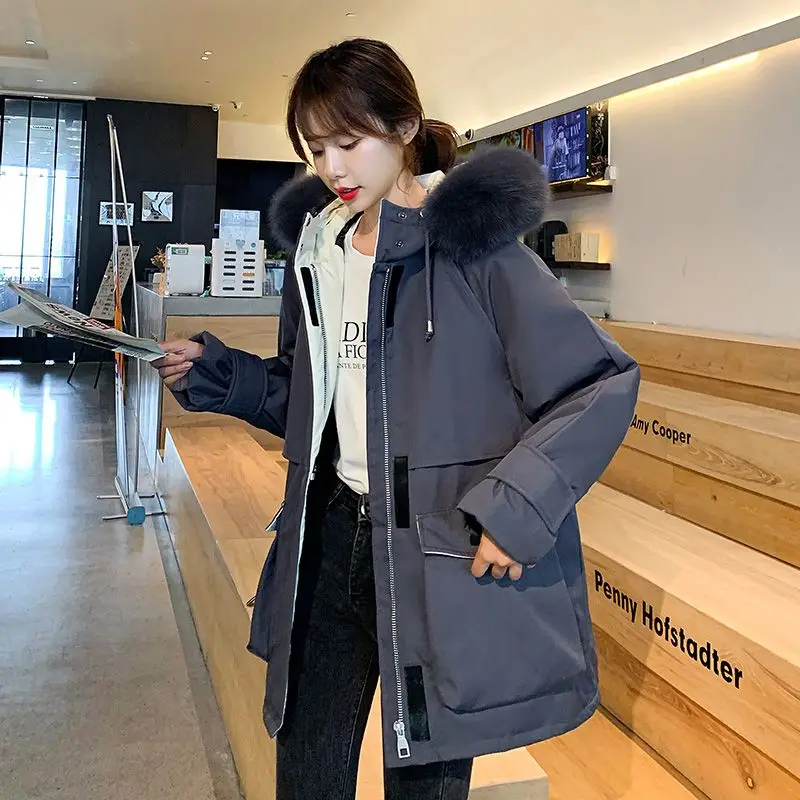 Fotvotee Winter Jacket Women Coat Hooded Thicken Warm Big Pocket Parkas Casual Elegant Puffer Jacket Vintage Oversized Outerwear