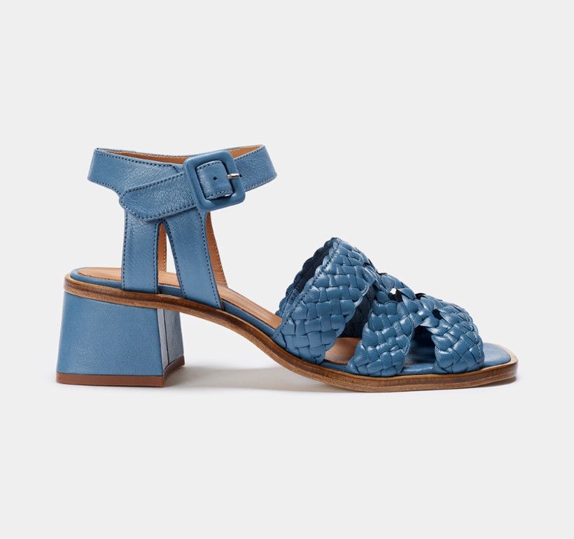 Fred is a lattice-style woven square-toed sandal that is handmade by artisans. Cowhide and sheepskin leather upper and lining. Heel strap with tone-on-tone lined buckle. The insole is made of cowhide leather for better breathability. Leather sole. The heel height is 4 cm, measured at the center of heel not at the back. Wide heel for improved comfort.