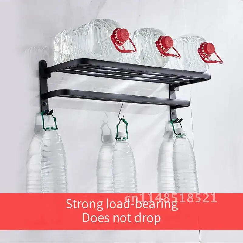 Frosted Black Aluminum Wall-Mounted Folding Bathroom Towel Rack With Hook Rack Shower Room Accessorie Storage Shelf