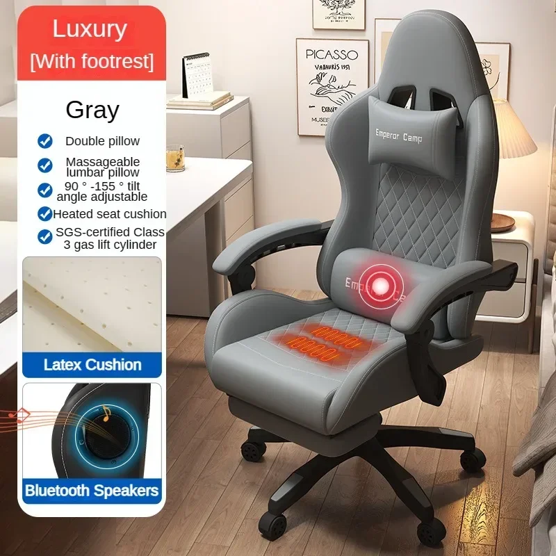 Gaming Chair with Bluetooth Speaker, Liftable Computer Chair Latex Cushion, Ergonomic Office Chair with Massage Lumbar Support