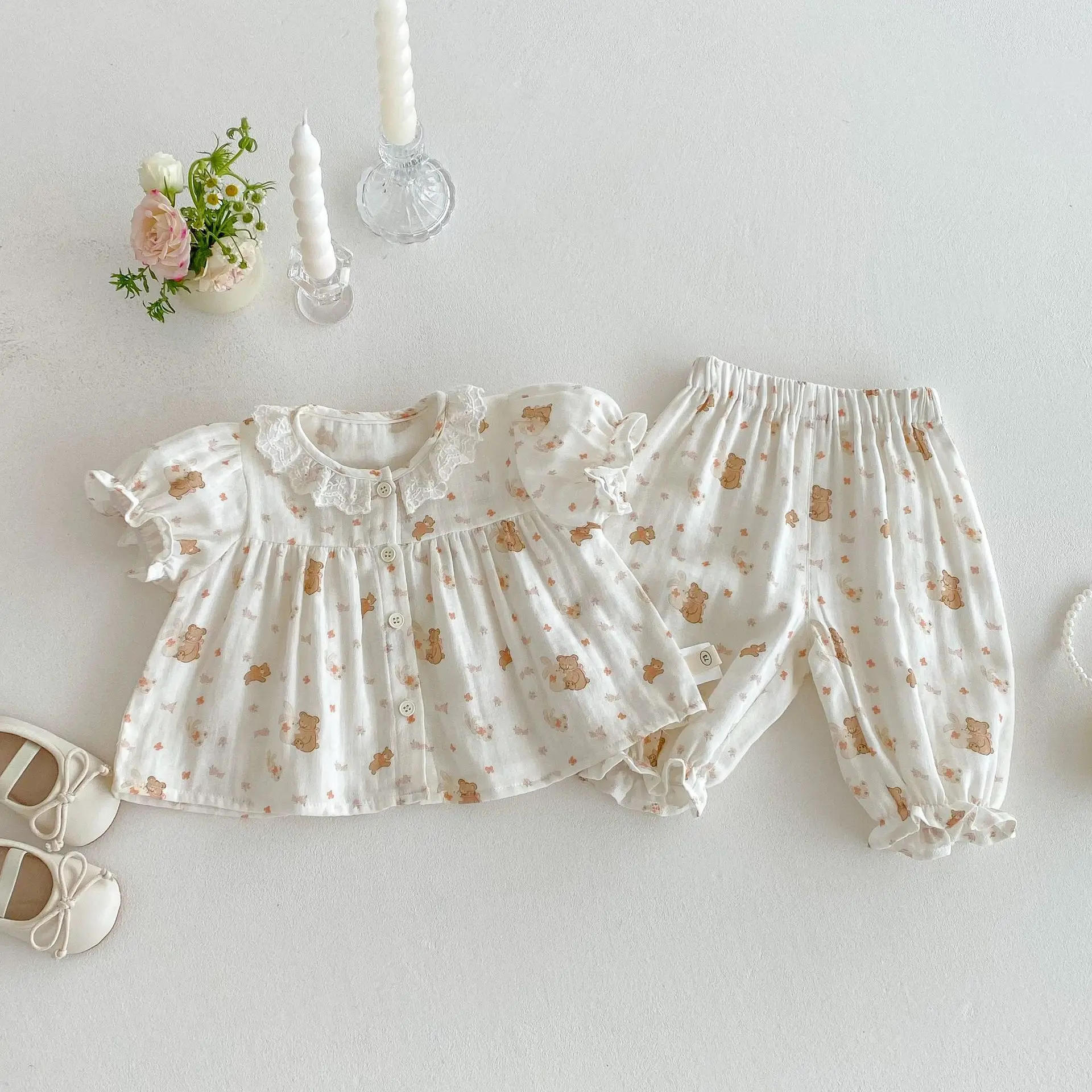 Girl's Cartoon Set 2025 New Summer Baby Thin Rabbit Pajama Trendy Full Edition Printed Sleep Pants Two Piece Set