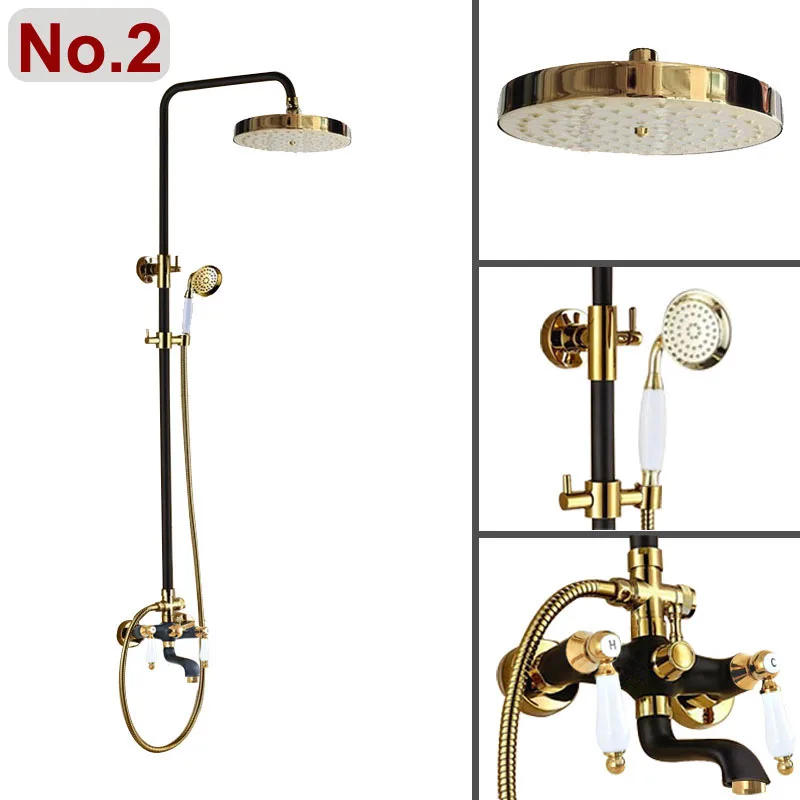 Gold & Black Oil Rubbed Brass Wall Mounted Bathroom Dual Handles 8" Inch Rain Shower Head Faucet Set Bath Tub Mixer Tap azh404