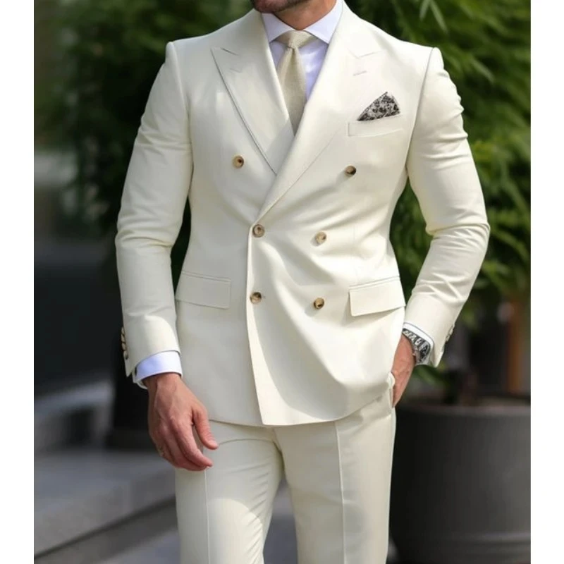 Green Men's Suits Solid Color 2 Piece Wedding Double Breasted Groom Formal Business Suits Daily Wear Tailored Made Male Blazers